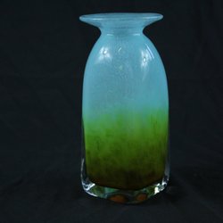 Grön och vit glasvas med mönster.