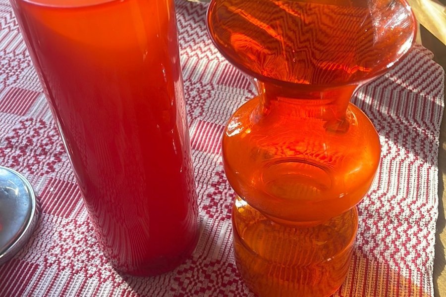 Två orangefärgade vaser