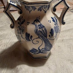 Jag säljer en fin vas med slingor. Vasen har höjden 25 centimeter och som bredast ca 13 centimeter.