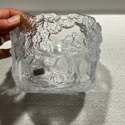 Enligt en ”bildsökning” kan denna vas sannolikt vara formgiven av Bengt Orup för Johansfors glasbruk under 1950-talet.
