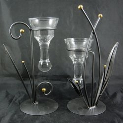 Vas i glas med lyster ,handmålad.