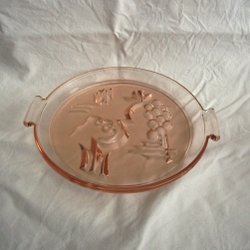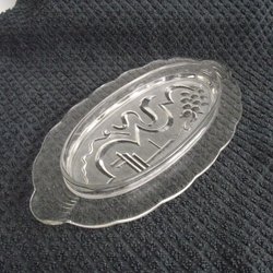 Stilfull glasvas i svagt grått glas. Trumpetformad med slipat och etsat art deco-mönster. Troligen svensk från 1920-30-talet. Bergh, Dahlskog, Ollers eller någon annan – jag vet inte. Mått: höjd 20 cm, diameter mynning 10 cm, diameter fot 8 cm. På mynningskanten och på foten finns en målad linje som oxiderat – ser ut som guldfärg.