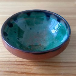 En glasvas med en räfflad textur på sidorna och ett mönstrat parti nedtill. 16 cm.