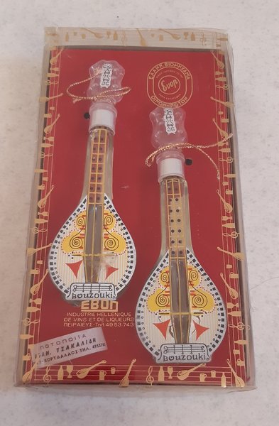Dekorationsflaskor ca 20 cm höga i form som en mandolin.