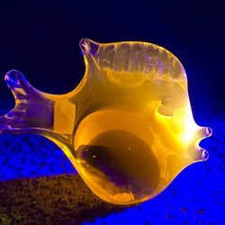 Litet sött troll i manganglas i perfekt skick, fin i uranglas samlingen. Belyst med 395nm . H 7,5 cm B 6,5cm D 4 cm