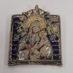 Unik antik reseikon, bordsikon med ljushållare. Handmålad med metallram.