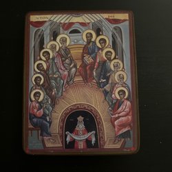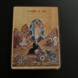 En dekorativ ikon med religiöst motiv.