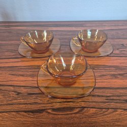 2 retro kaffekoppar med fat, Fontana. Gefle Porslin, 1970-tal