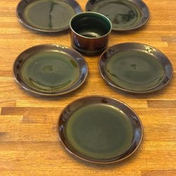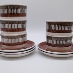Fyra assietter/kaffefat från Gefle, modell Dalarö. Troligen från 60 talet.