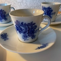 6 fina kaffekoppar m fat - BLÅ VINRANKA - från GEFLE "Flytande blått"