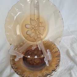 6st bruna tallrikar Smide från Gefle designe Berit Ternell, producerades åren 1966-74. Brukslitage finns. En av tallrikarna har en spricka i kanten se bild 5 och 6. På bild nr 7 kan man se att en rallrik är lite brun i kanten, har dock inte hittat några skador på tallriken.