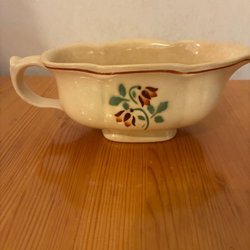 En vacker kanna från Gefle med blommönster och gulddetaljer. Perfekt för servering eller som en dekorativ inredningsdetalj.