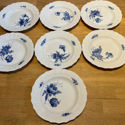 Fat 15,5 cm i diameter, koppar 9,5 cm i diameter, 6 cm höga.
