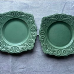 2 st. Assietter från Gefle. Celadongröna. Ca 20 cm i diam. Dom har ljusare fläckar. Inga sprickor eller nagg. Se bilder och zooma in. Se liknande assietter i mina andra auktioner. Sampackar gärna. Använder traderas automatiskt vinnarmail. Köparen betalar för frakten.