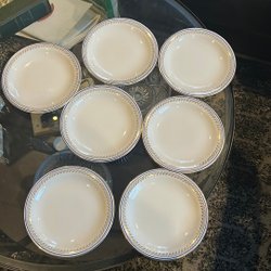 Fat från Gefle Percy-mönster. Fatet har en gul blomma i mitten och en gul rand längs kanten.