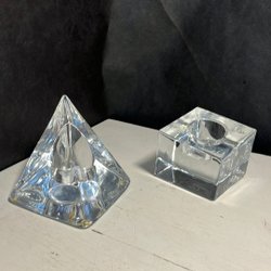 Två burkar med lock från Gefles serie Ingeborg. En mindre för vitpeppar och en större för havregryn. Det lilla locket har en liten skada på knoppen annars i bra skick. Den lilla burken är 12,5 cm hög med lock och den större är 20 cm hög med lock.