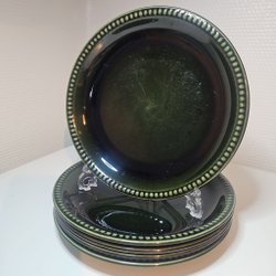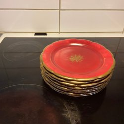 Fyra assietter från Gefle. Tre av dem är märkta "Strauss" och en är märktDiameter 19 cm. "Solbritt". Made in Sweden. En liten ca 7 mm kantstött flisa. I övrigt normalt slitage för så gammalt porslin som tex ålderskrackelering i glasyren.