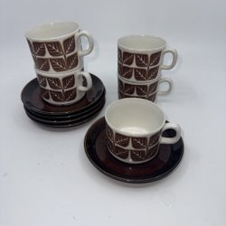 Blad Kaffekoppar Gefle 6 Delar Dia fat 13 cm ca Höjd kopp 5 cm ca Dia rakt över koppen upp till 7 cm ca Hela Jätte fina se bilder Frakten är för Sverige
