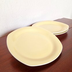 3st mattallrikar från Gefle. Flintgods 1900-talets första hälft. Tallrikarna är ca 23cm i diameter.
