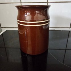 Litet krus/kruka, brun med vita ränder - (Nittsjö) - Vintage