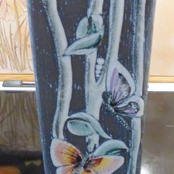 Vas i keramik, retro. Bruksslitage. H; 20 cm. D; 7.5 cm. Skickas med Schenker. Betalning sker inom 3 dagar efter avslutade auktion eller överenskommelse .