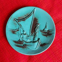 Inga nagg. En del färgförändringar och krackeleringar i glasyren. En spricka i en av tallrikarna. Se bilder.