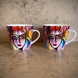 2 st retro muggar, Signerade