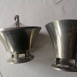 Gammal vit soppterin keramik med röda detaljer felfri längd 45cm höjd 25 cm