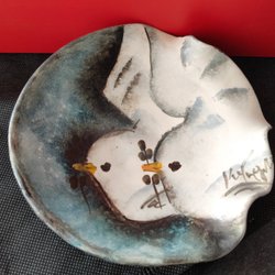 En vacker keramiktallrik med en relief av en kvinna.