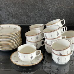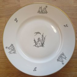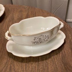 Vit tekanna från ALP Lidköping med dekorativa detaljer i guld och lila. Inga skador - fint skick