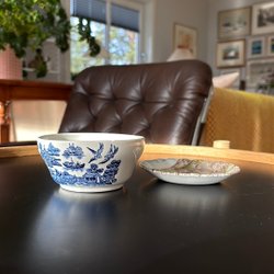 3 st miniatyrer i keramik, keramikkrus, Miniatyrvas