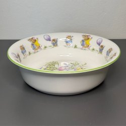Fint litet porslinsset med julmotiv föreställande tomtar i olika sysslor – en stickar och en annan bär en blomma tillsammans med en vän. Härliga färger och lekfull design som passar perfekt till juldukningen eller som present.