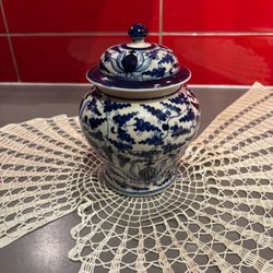 Burk i porslin med trälock.