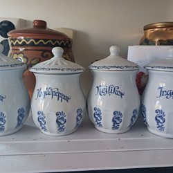 Tre stycken kryddburkar i keramik med korklock.