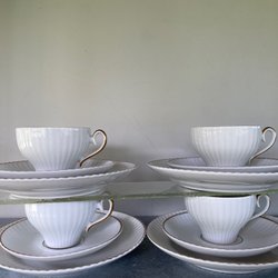 Tre stycken koppar från Karlskrona, modell Percy. Koppens höjd är ca 7,3 cm och diameter ca 6, 6 cm. Koppen har en struktur i form av ränder i porslinet, vilket ger koppen karaktär och har guldiga handtag. Skuggor finns i bilderna men kopparna är fina inuti. Fraktkostnad med Schenker, inom Sverige är 47:-