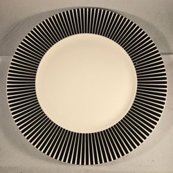 Två tallrikar från Zebra med svartvita ränder.