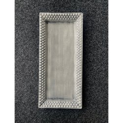 Fat från Mateus i grå färg. Fatet är ovalt med en kant av bubblor.