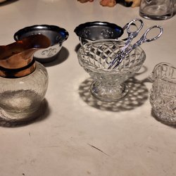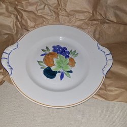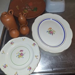 En fin teservis från Table Mates. Den är mikrovågsugn- och diskmaskinsäker.den har tuvärr lite åldersskador då den använts flitigt . Har fotograferat det som är dess blesyrer . De tre sista fotografierna visar. Sockerskålen krackelerad +en liten flisa borta . Gräddkanan har en flisa i botten borta .och en kopp har som en spricka i det blå fältet ovan kant och en annan kopp har lite stötmärken i botten .. men annars så är det en mycket trevlig service med god plats för kaffe eller Te i kopparna .