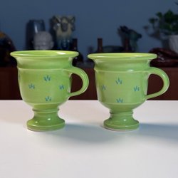 Två stycken handgjorda muggar i glaserad keramik.