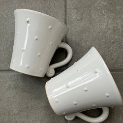 Två stycken handgjorda muggar i glaserad keramik.