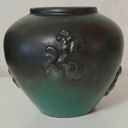 Jättefin vas, osäker på vad det vara, typ Höganäs eller Uppsala Ekeby? Men fin är den, vackert grön, helt utan nagg.