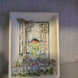 Söt liten tavla I keramik från Jie gantofta sweden.