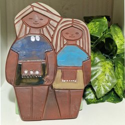 Jie Gantofta väggrelief/ keramiktavla/Edit Risberg / flicka med fågel /Retro
