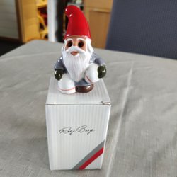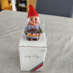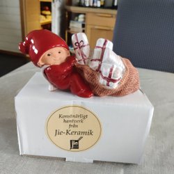 Söt tomte " Pojke med paket " från Jie Keramik, designad av Ewa Jarenskog 1990-tal. Perfekt som juldekoration eller för samlaren . Kommer i originalkartong. Höjd 10.5 cm