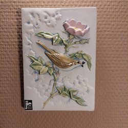 Retro keramikplatta med fjärilsmotiv.