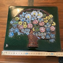 En charmig tavla från JIE Gantofta. Den har en motiv med en lampa, böcker och glasögon. Designad av Aimo Nietosvuori. Märkt med 931 på baksidan. Den har en upphängningsanordning på baksidan. Mäter cirka 17 cm x 17 cm.