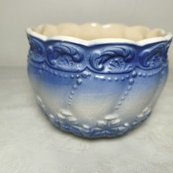 Krukan har en dekorativ relief med motiv av druvklasar och blad.