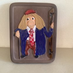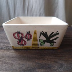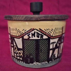 Superfint vintage morgenmadssæt fra Deco Hälsingborg. Bræt bestående af metalholder til brød og to keramikkrukker til marmelade m.v.