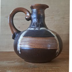 Karott från Deco Hälsingborg. Höjd 8 cm, bredd öppning 15 cm. Brukslitage. Några nagg I överkanten.