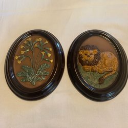 Två fina väggplattor från Gabriel Sweden. En med motiv av Gullviva från Närke (A 207) och en med Mistel från Västmanland (A 241).
